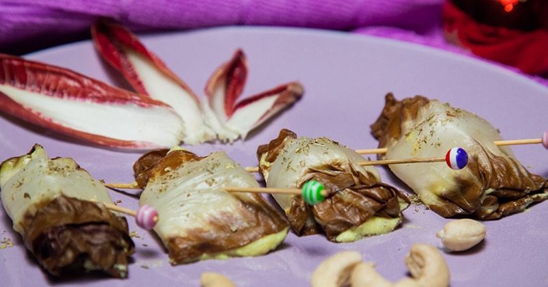Involtini di radicchio ripieni di “cremosa di anacardi”. Una sinfonia di sapori da gustare in un sol boccone.