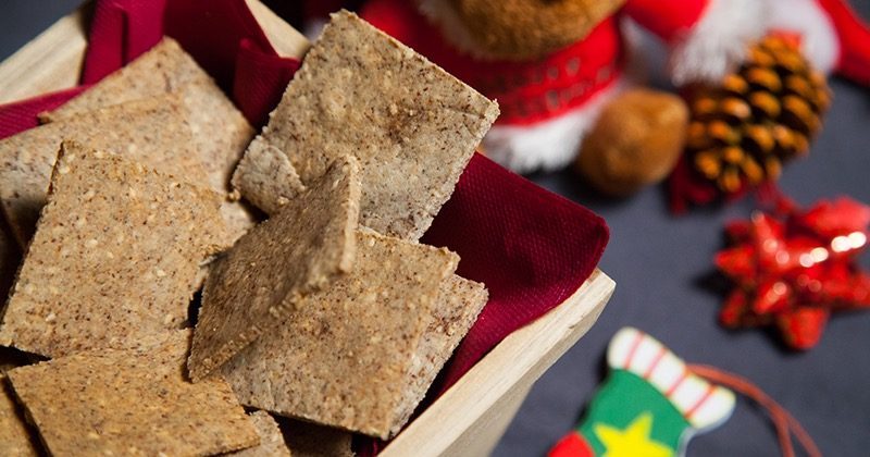 Croccanti crackers di mandorle, semi di sesamo e olio di cocco. Un’alternativa gustosa, divertente e sana a pane e taralli.