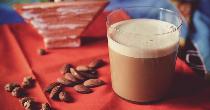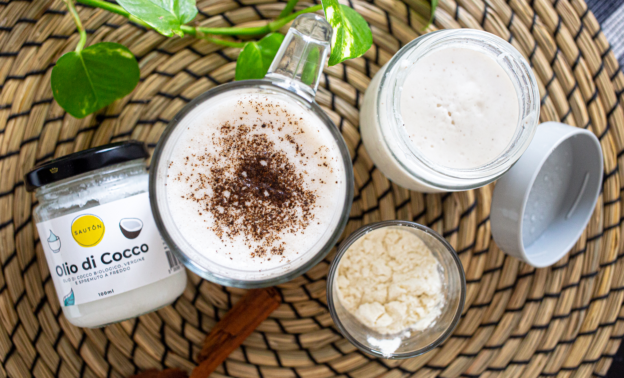 Smart Cappuccino con burro di cocco, farina di mandorle, cacao crudo e moringa.