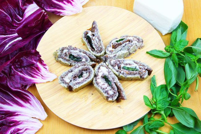 Questi rotolini di radicchio alla caciotta di capra sono ideali come antipasto e ottimi anche come pietanza da picnic.