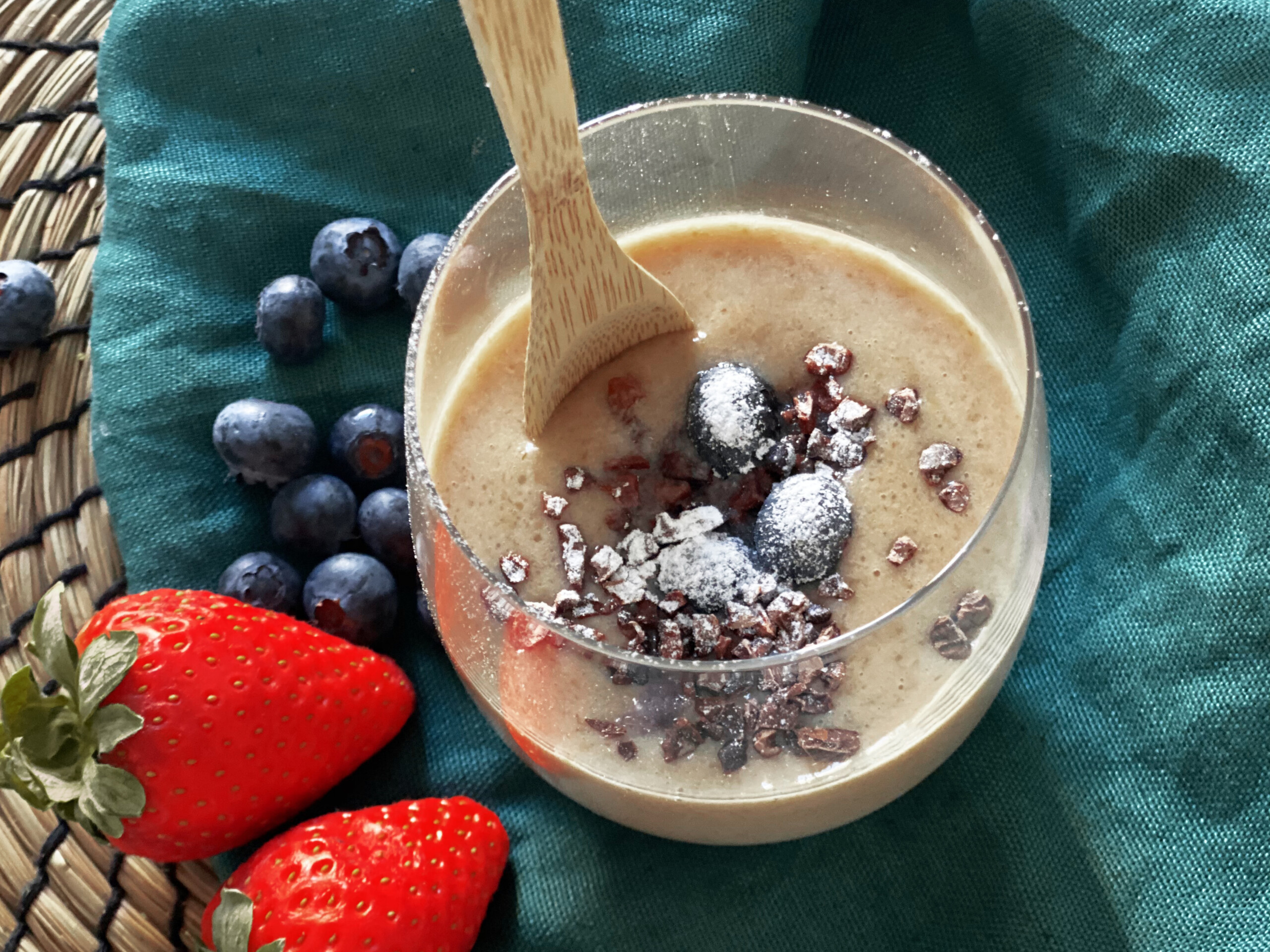 Questa è la ricetta base del budino che puoi arricchire come preferisci, ad esempio con un po’ di gelsi, berry mix, pepite di cacao.