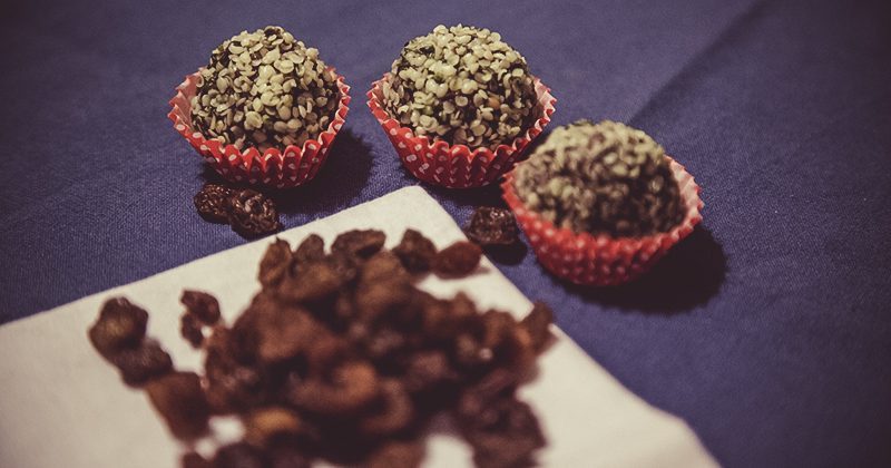 Palline dolci con canapa, uvetta, vaniglia e olio di cocco. Semplici, proteiche e gustose.