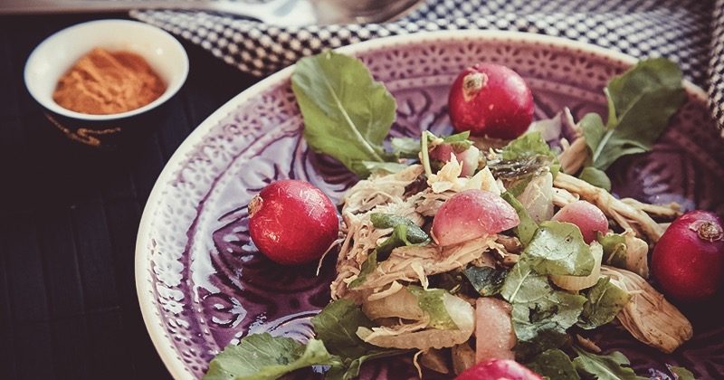 Una sfiziosa insalata di pollo da gustare a pranzo, a colazione o da servire in piccoli bicchierini per uno sfizioso finger food