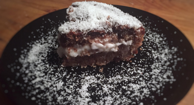 Brownies di cocco: una deliziosa ed equilibrata rivisitazione del classico brownie, con farina di cocco, cacao e sciroppo di yacon.