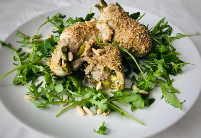 Una deliziosa ricetta a base di pesce: il sapore dolce e delicato del pesce spada viene esaltato dal gusto deciso del pesto e dalle note esotiche del sesamo.