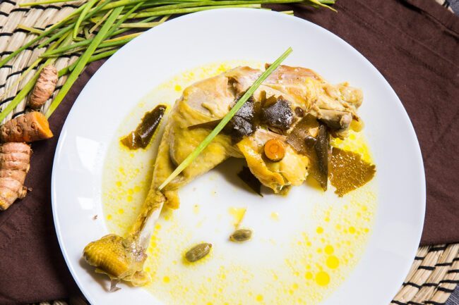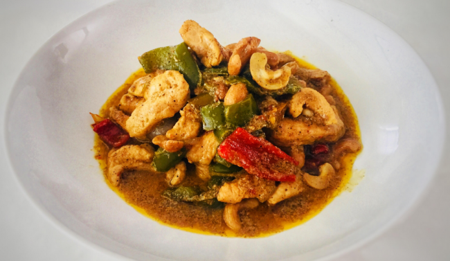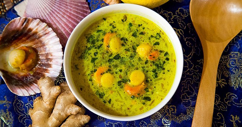 Un’armonia di latte di cocco, spezie e capesante in una zuppa dal sapore avvolgente.