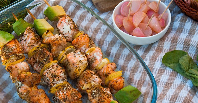 Accessori: Carta da forno, Forno, Stuzzicadenti per spiedini Preparazione Prepara una emulsione con sale, limone e senape. Versala sul salmone e lascia marinare per 15 minuti in frigorifero. Disponi sulla carta […]