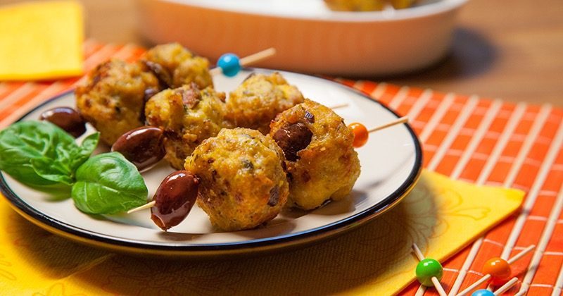 Sfiziose polpettine con tacchino, olive e parmigiano, perfette per un pranzetto sfizioso o un allegro pic-nic