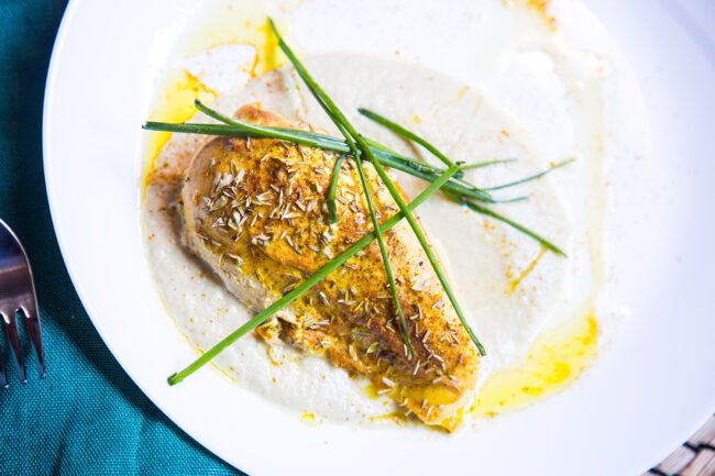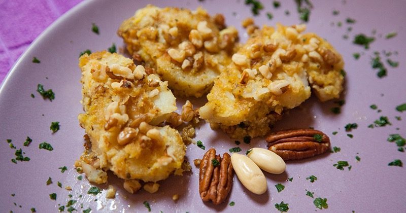 In questa ricetta, l’olio di cocco e il latte di cocco gli danno un sapore esotico e lo rendono morbidissimo mentre le erbe aromatiche e i capperi gli conferiscono una nota più decisa.
