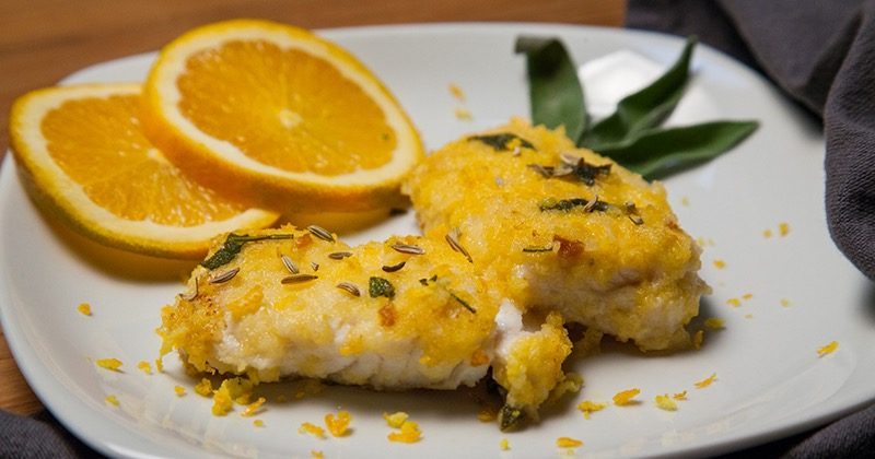 Filetto di merluzzo con arancia e semi di finocchio: una ricetta semplice e rapida dal sapore raffinato e delicato.