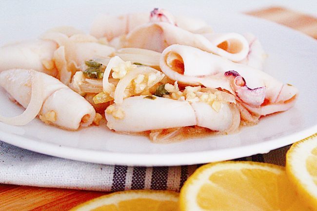 I calamari con succo di arancia, senape e capperi sono un piatto facile e veloce da fare ma ricco di gusto.