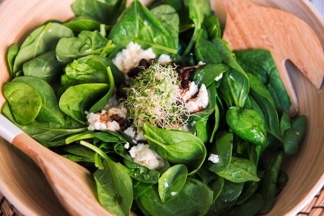 Un’insalata leggera e saporita con feta, spinacino e il tocco esotico dell’aceto balsamico di cocco.