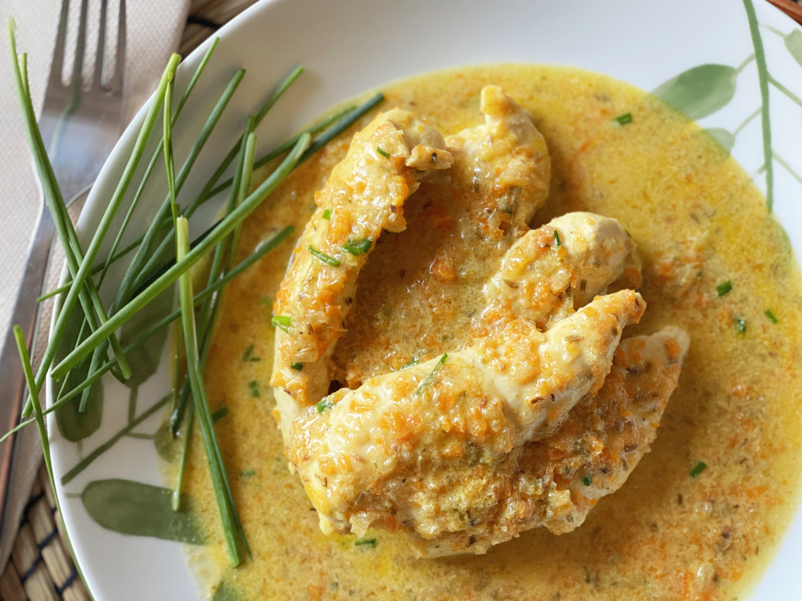 Morbidi bocconcini di pollo dal sapore unico, con curry e latte di cocco da preparare con la slow cooker.
