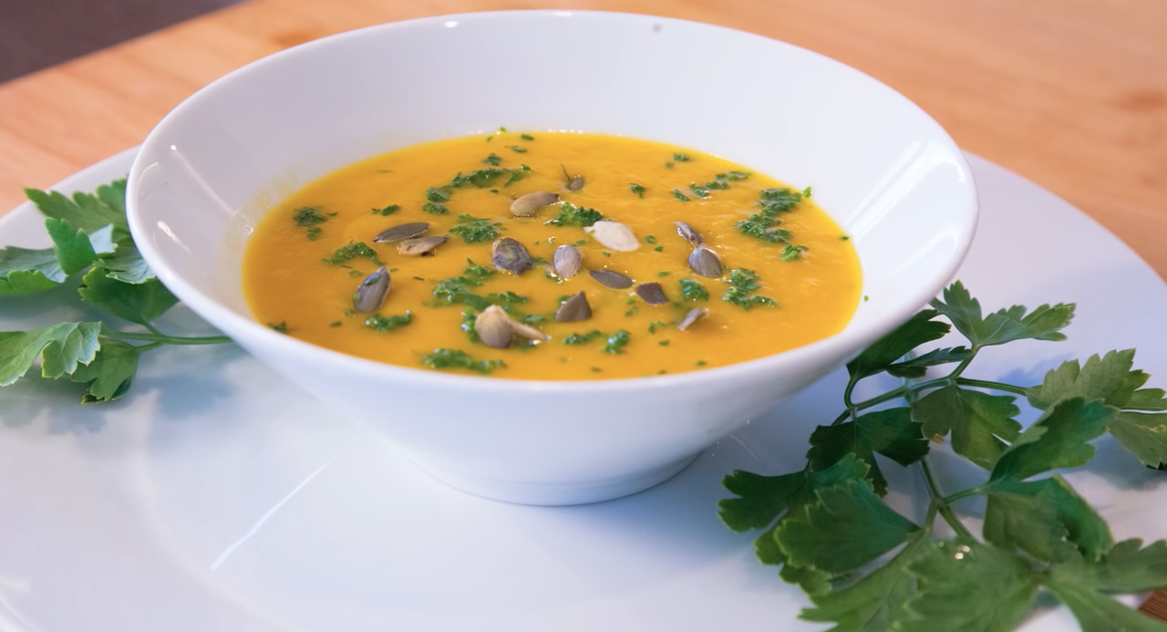 Una cremosa vellutata di lenticchie rosse e zucca preparata da Simonetta, Energy Trainer.