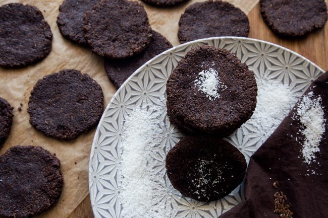 Croccanti crackers di mandorle, semi di sesamo e olio di cocco.