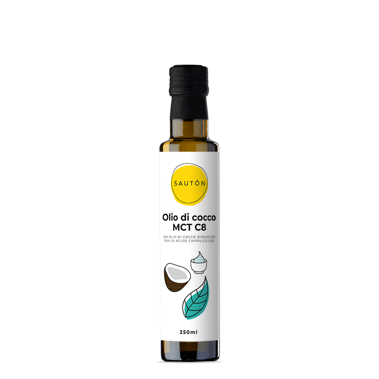 Un ottimo nutrimento per i batteri sani dell’intestino è l’acido butirrico, che si trova prevalentemente nell’Olio di cocco MCT C8. Questo olio è 6 volte più potente di un normale olio di cocco e contiene chetoni di immediato utilizzo.