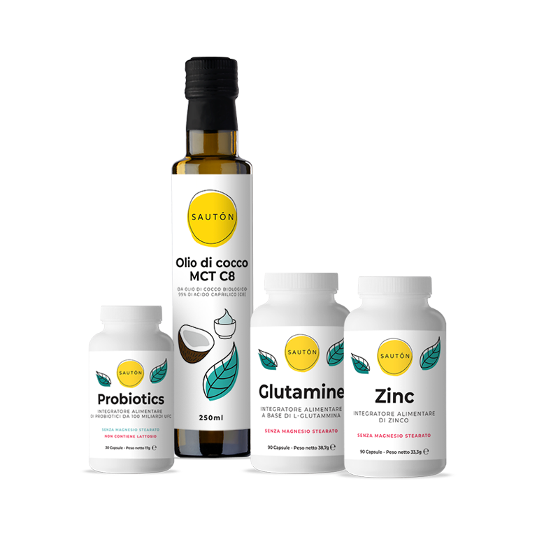 Sì, il kit è formulato con i migliori rebalancer per preservare la salute dell’intestino, ridurre l’infiammazione e popolare la flora batterica sana. Contiene Probiotics, che aiuta a ripopolare l’intestino di amici sani; l’Olio MCT C8, che dona nutrimento alla flora batterica sana. Glutamine è il rebalancer per spegnere l’infiammazione intestinale mentre Zinc, ricco di antiossidanti, ha anch’esso proprietà antinfiammatorie.