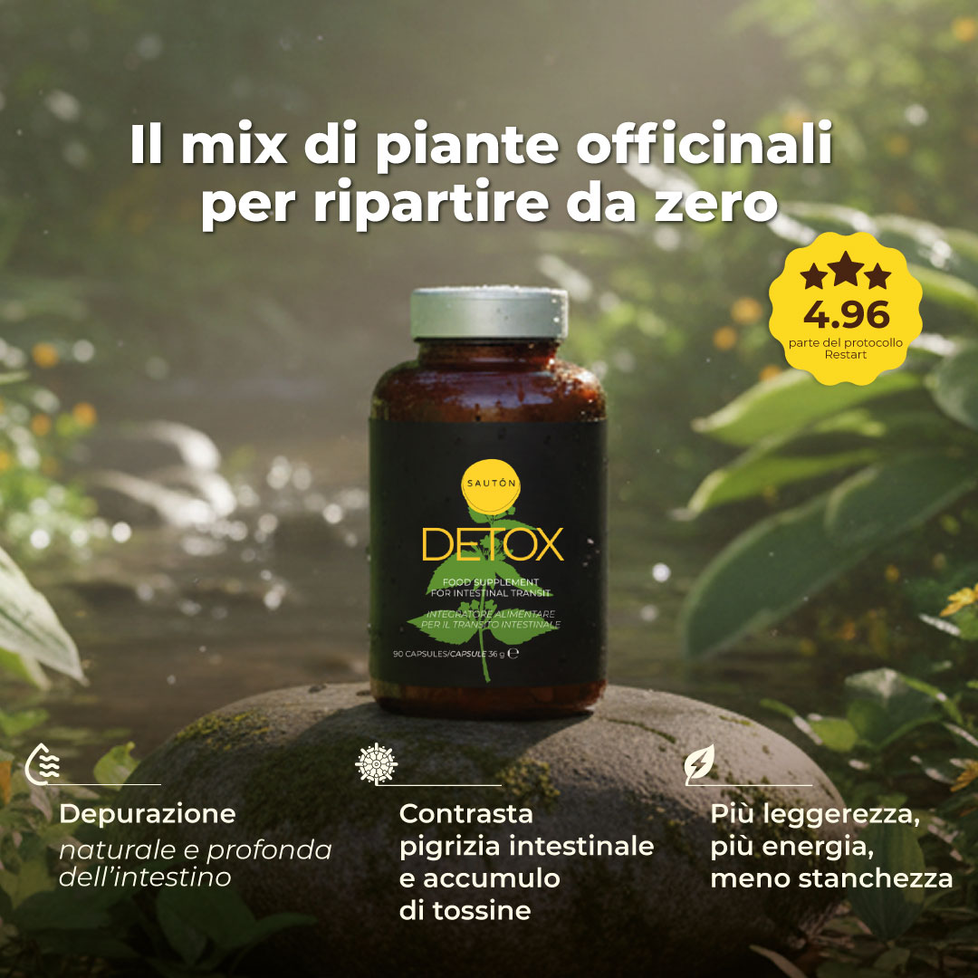 L'aumento dei movimenti intestinali e la sensazione di gonfiore, sono normali effetti collaterali che miglioreranno nei giorni. L'uso consigliato di Detox è di un mese, da ripetere al bisogno (non essendo un vero lassativo, può essere usato più spesso perché disintossica e riequilibra).