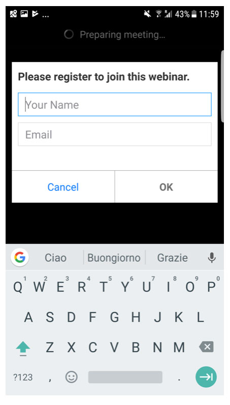 Clicca su “Ok” per partecipare all’incontro dal vivo.