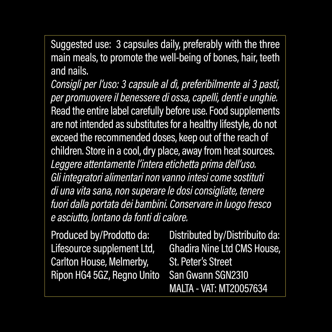 È consigliato l’impiego in presenza di osteoporosi, nei postumi di fratture ossee e in caso di unghie e capelli fragili. 1