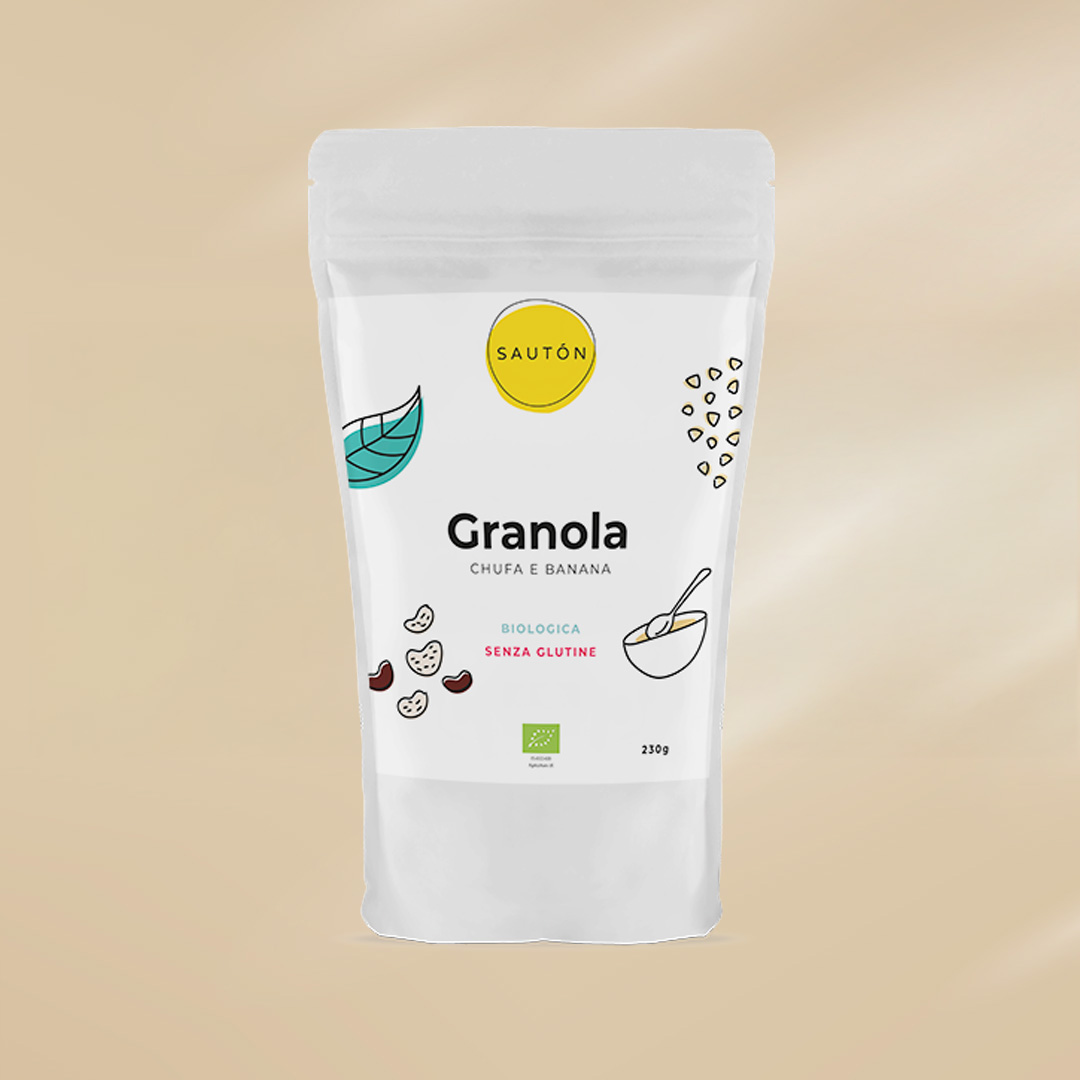 Croccantissima, senza cereali e senza glutine, la granola è a base di chufa, il famoso Zigolo dolce, dal gusto simile alla nocciola Naturalmente dolce, non possiede zuccheri aggiunti ed è ricca di vitamine e minerali come magnesio, calcio, fosforo e ferro. Ottima alternativa agli snack industriali, è ideale per iniziare la giornata o da mangiare come spezza fame durante il giorno.