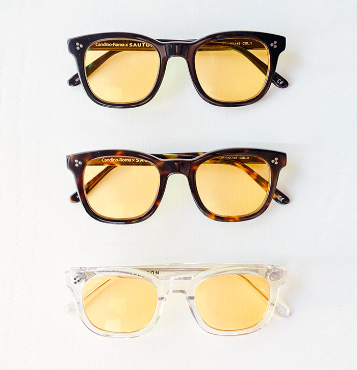 I Night Glasses SAUTÓN sono realizzati in collaborazione con l’antica e rinomata Ottica Candino con sede a Roma. Sono dotati di speciali lenti color ambra con trattamento antiriflesso multistrato.