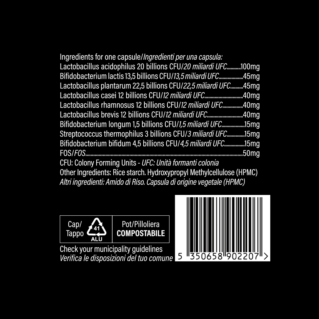 100 miliardi di UFC (Unità formanti Colonia) per capsula.