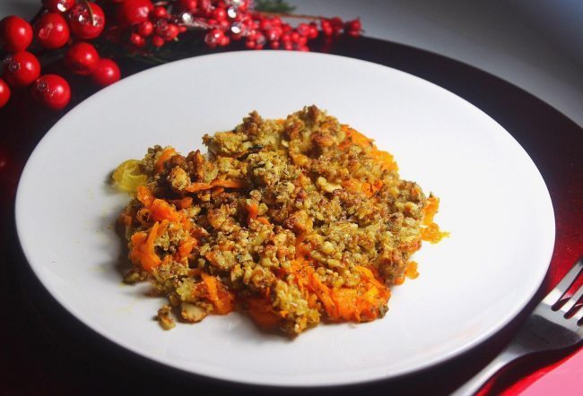 1. Grattugiare la zucca cruda a julienne con l’aiuto di un mixer e versare in una ciotola