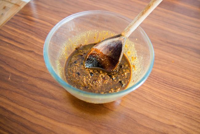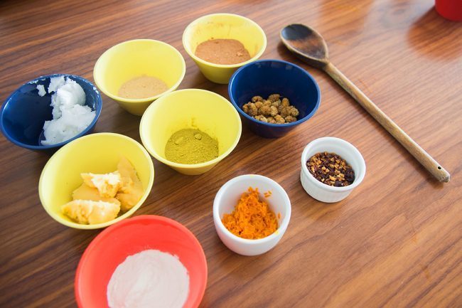 4. Unisci al composto l’olio di cocco e il ghi liquidi e mescola bene.