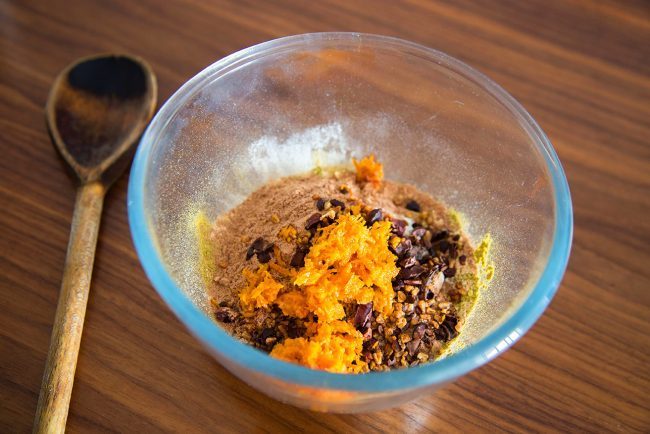 2. Trita l’ertitritolo nel macina caffè e grattugia la buccia di un’arancia