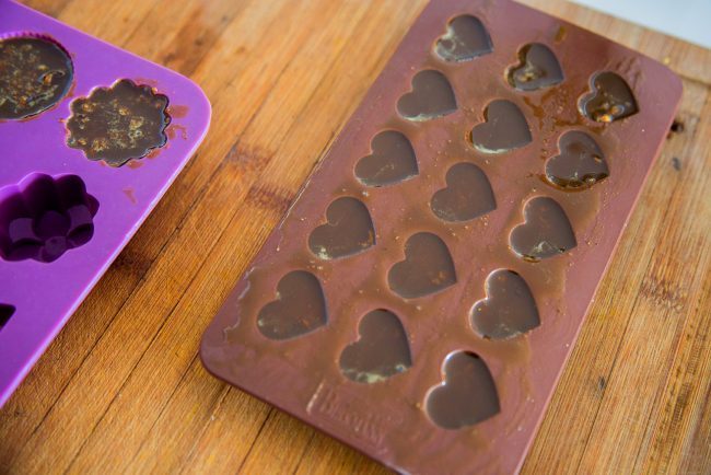 5. Distribuisci il composto in uno stampino per cioccolatini e forma di cuore.