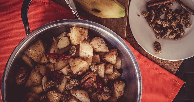 9. Aggiungi l’olio di cocco, la maca, le bacche di goji mescola, spegni e copri per qualche minuto