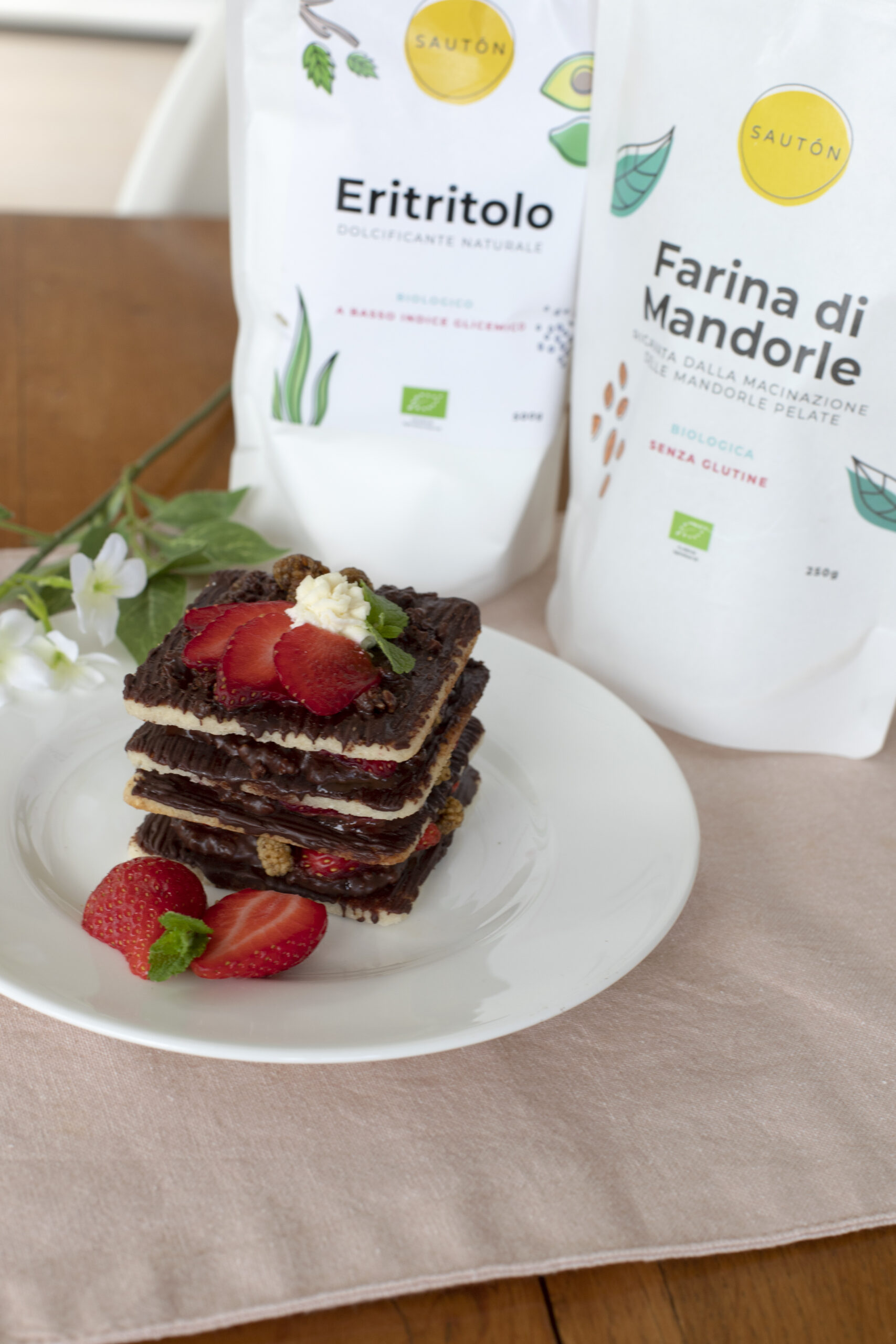 Un dolce fresco, facile e veloce da preparare. La crema di mandorle e il cacao insieme sono una bomba e non ho dubbi che questo sarà un dessert che ameranno grandi e piccini. Condiscilo con la frutta che preferisci (o come ho fatto io con le fragole).