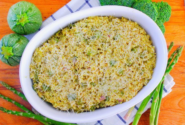 3. Metti insieme il riso e le verdure e spolvera con del Parmigiano.