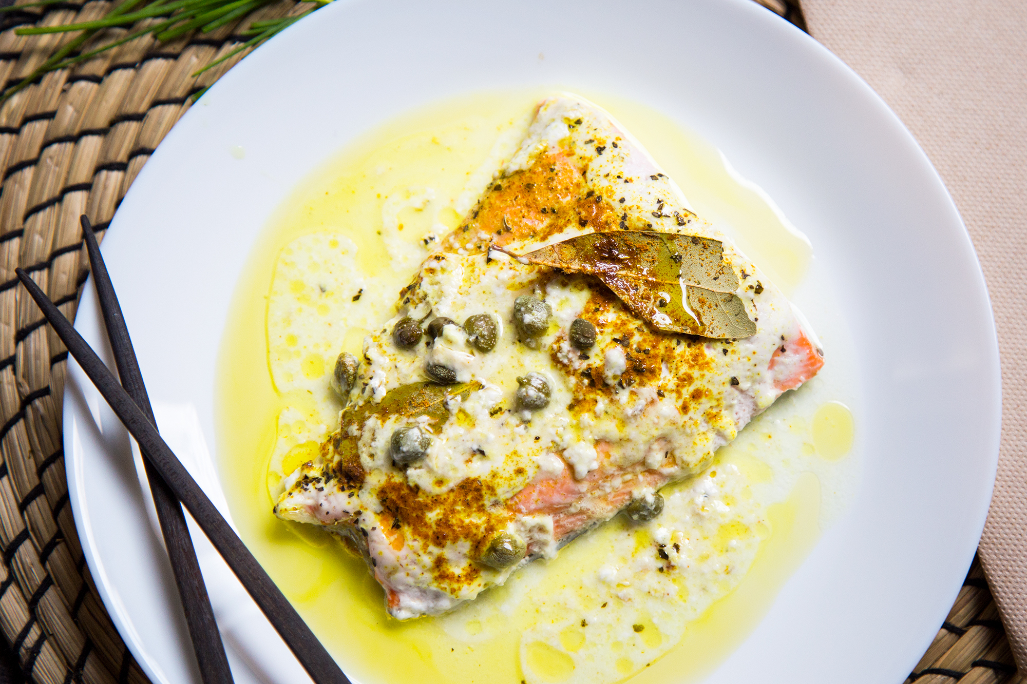“Mi piace gustare il salmone in vari modi. In questa ricetta, l’olio di cocco e il latte di cocco gli danno un sapore esotico e lo rendono morbidissimo mentre le erbe aromatiche e i capperi gli conferiscono una nota più decisa. Davvero da provare!“