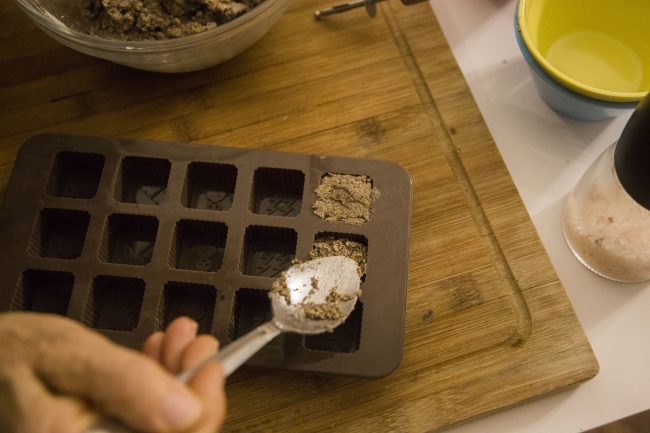4. Distribuisci il composto in uno stampo per cioccolatini e metti in frigorifero a rassodare.