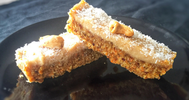 NOTA: dato l’alto contenuto di zuccheri naturali (presenti nei datteri e nello sciroppo di yacon) è sconsigliato il consumo di questo dolce in periodo di Restart anche se stai seguendo lo schema per vegetariani o vegani.