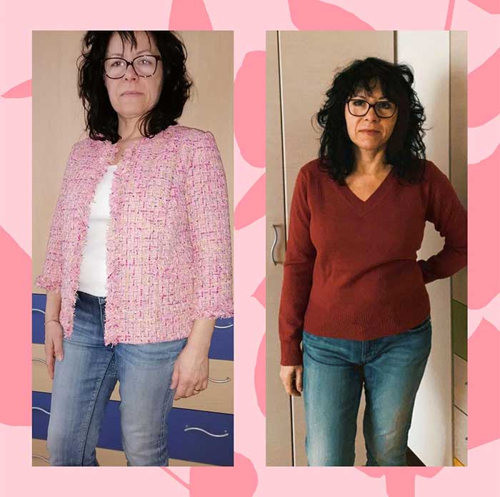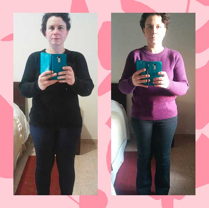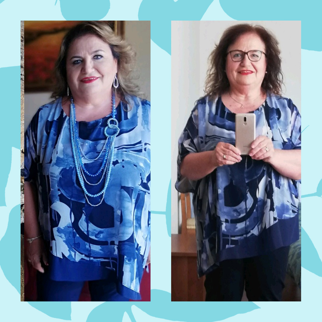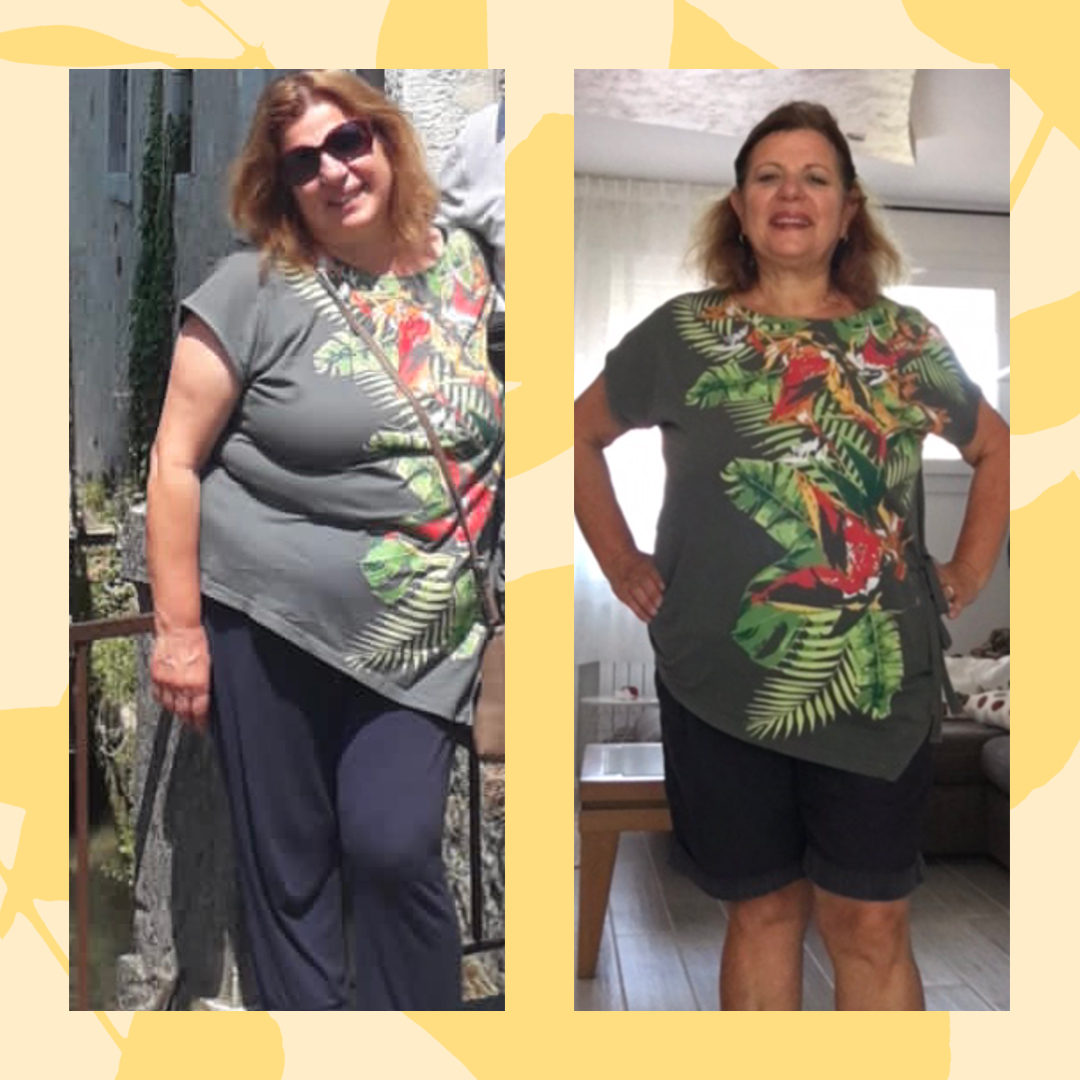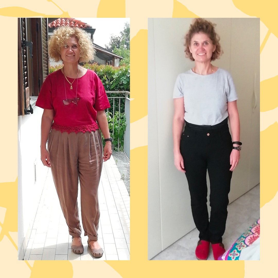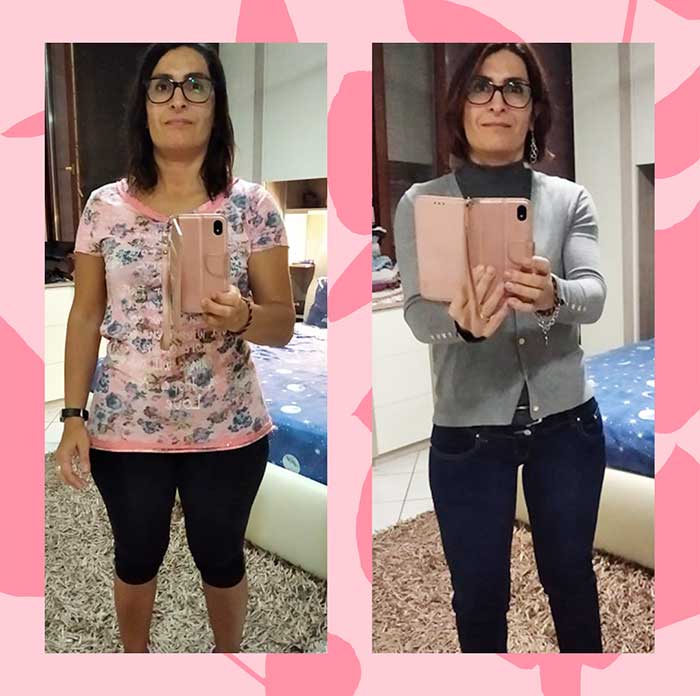 Ho seguito tutte le istruzioni date dal programma e, già dopo una settimana dall’inizio del programma, ho cominciato a star meglio e ad oggi mi sento come nuova, ho perso parecchi chili (ora ho quasi la forma che avevo a vent’anni) passando da una taglia 46 – 48 ad una attuale 42.