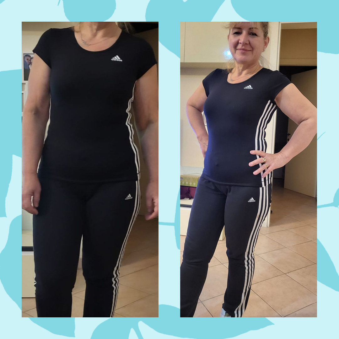 Il cambiamento è stato così rapido e veloce che anche le persone che frequento quotidianamente sono rimaste sbalordite e io felicemente colpita di aver ritrovato la forma fisica e soprattutto mentale in breve tempo.